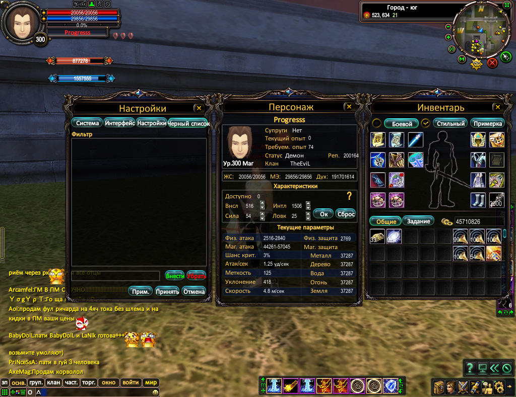 6. Ник - Progresss 7. Класс, лвл, билд - Maг,300лвл,Интовый 8. Опыт игры в PW в целом и на сервере Lafnian и Axesas в частности - 3-4 месяца 9. Предыдущие кланы, в которых вы состояли? Назовите причины ухода - Много было кланов не вспомнить уж. 10. Почему выбрали именно клан "SkyDream" и откуда узнали о нём? - От друзей и из мира,собрался потому-что в тру клан захотел х) 11. Есть ли на данный момент кофликты между Вами и членами нашего клана? Были ли ранее подобные ситуации? - Нет 12. В какое время бываете онлайн (по Москве)? - 8:00 13. Чего вы ждёте от клана и что можете дать клану сами? - Жду норм клан,дам себя как хорошего игрока 14. Готовы ли вы выслушивать ненормативную лексику от мастера и маршала клана, во время сборов, тв (нервы не железные) - Готов 15. Ваш друг и соклан скрестили мечи. Ваши действия? - Кинуть несогласие обоим и написать ТИХО 16. Готовы ли вы слушать и исполнять поручения руководства клана? - Готов на 100% 17. Есть ли у нас в клане Ваши знакомые (друзья), готовые поручиться за вас? - Друг есть но не знаю готов ли поручиться 18. Ознакомлены ли вы с уставом и согласны ли вы с ним? - Ознакомлен и согласен-Sus ojos eclipsó mi alma!..." Как правило, они не связанны с агрессивным настроем, но каждый соклан должен там присутствовать. 19. Готовы ли вы пройти пвп тест? - Готов 20. Предоставить скрин аккаунта (главной страницы с персонажами), скриншот с открытым инвентарём/характеристиками/черным списком (обязательно) - Ниже